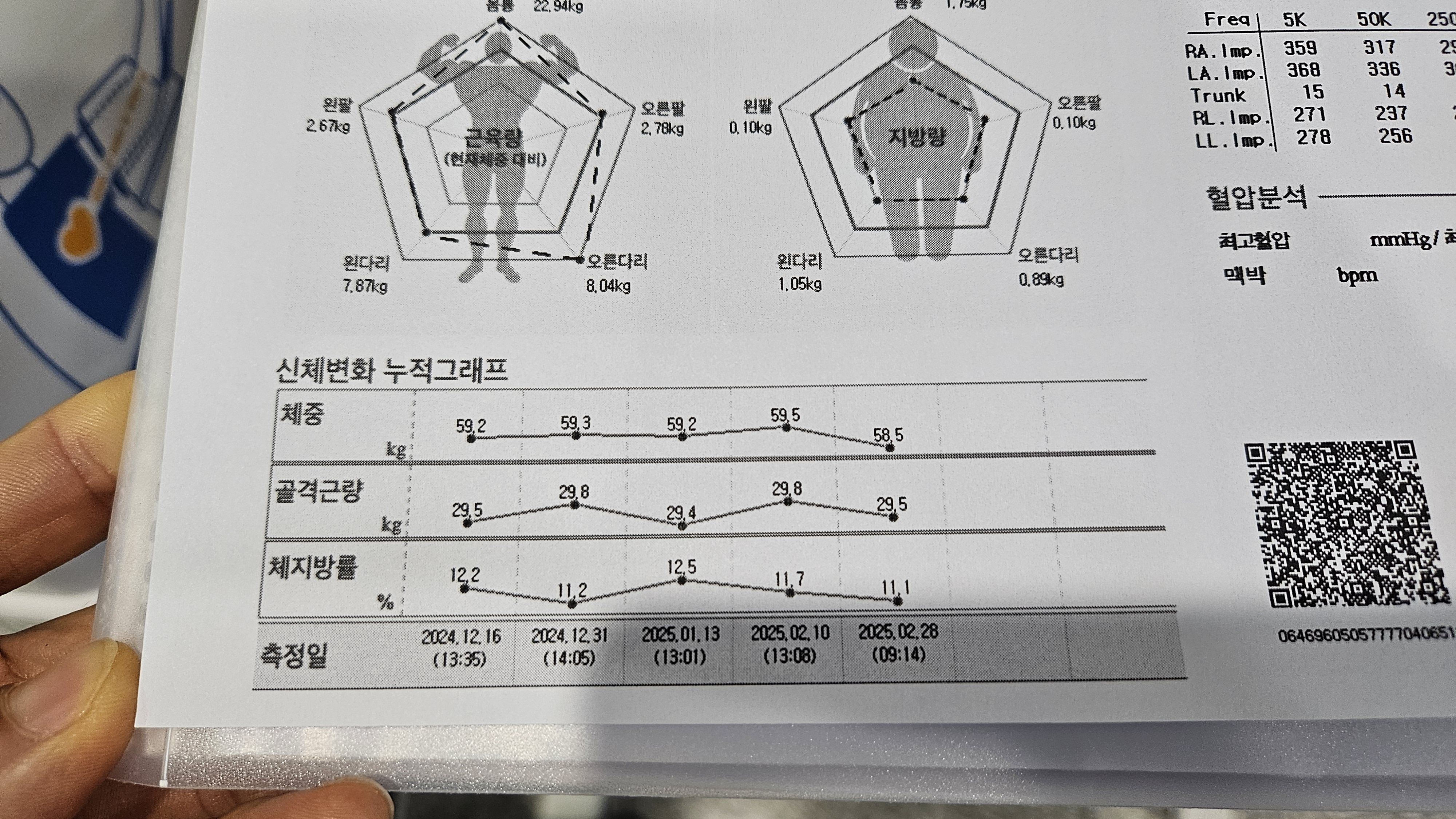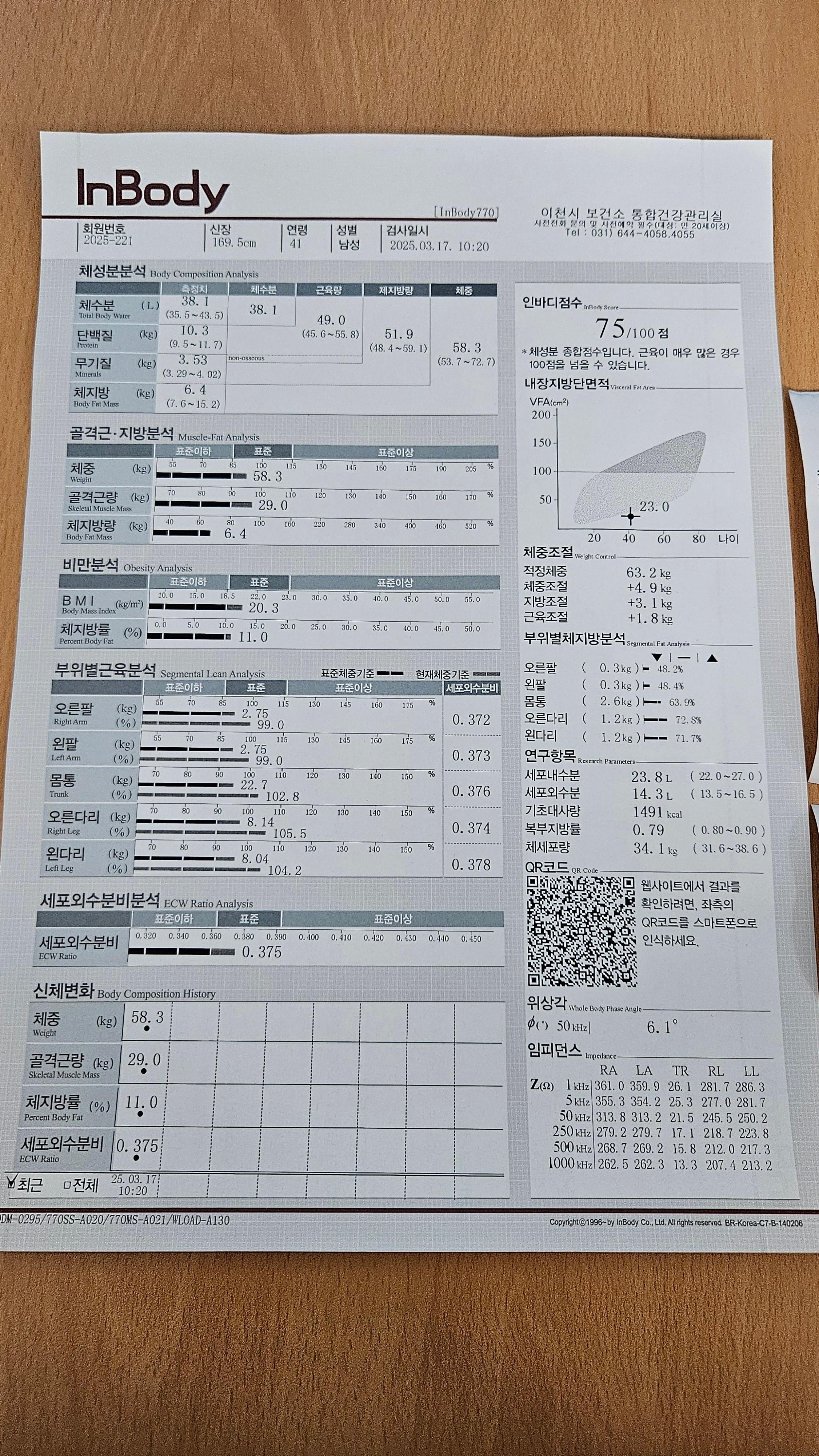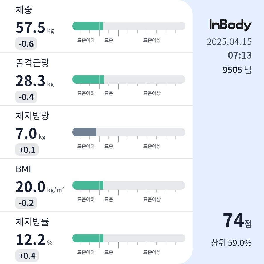 → 주 1~2회 측정 후 평균값 비교가 좋습니다. - 인바디 점수만 보지 말고 구성 요소도 함께 분석