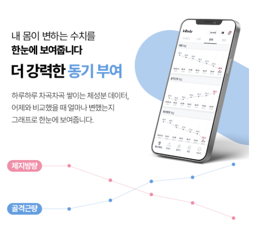 - 다이어트 진행 상황 파악: 체중이 같아도 인바디 체지방률이 낮아졌다면 진짜 다이어트에 성공한 것!