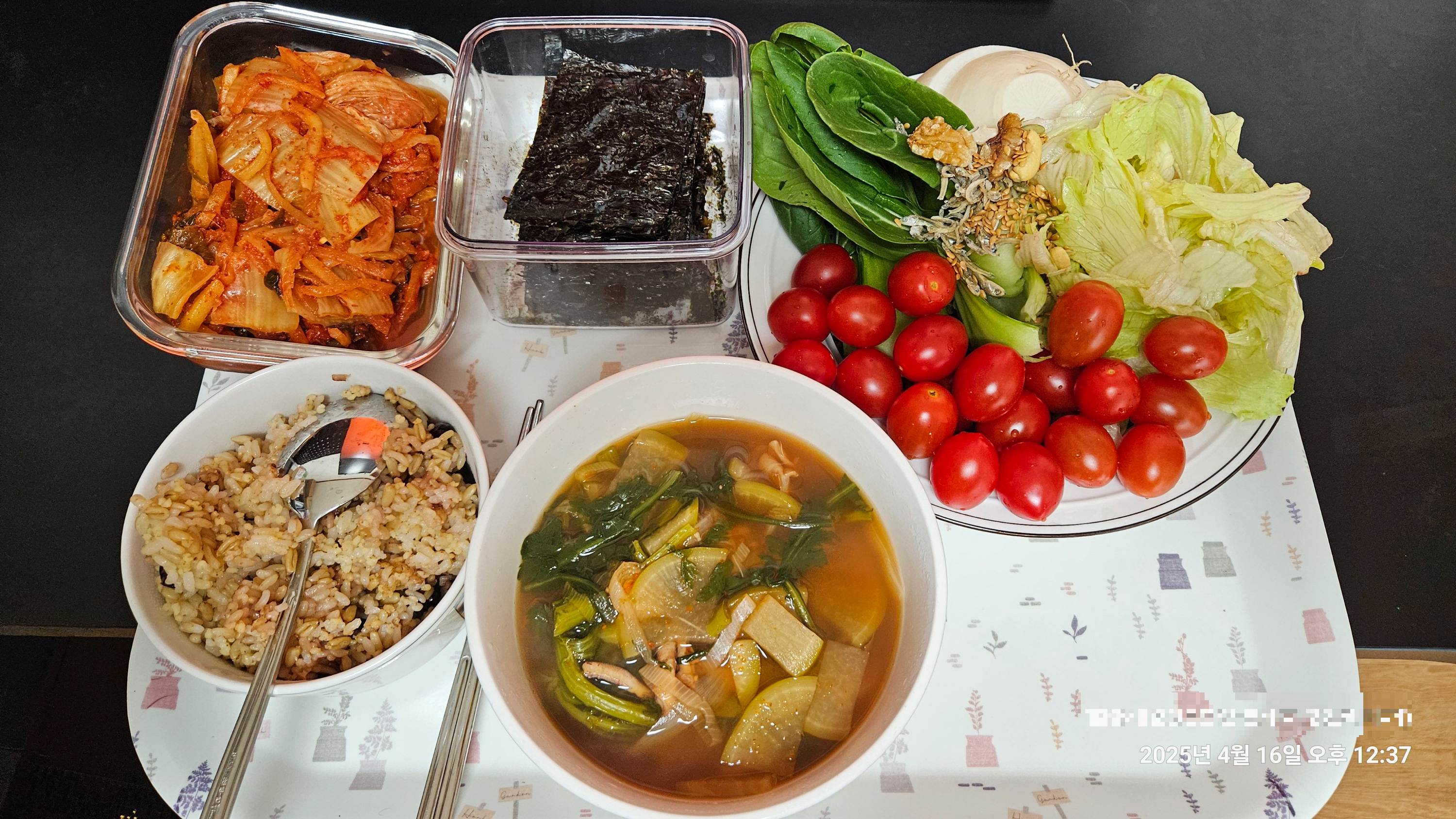 - 첫 끼: 고단백 식사 + 채소 (닭가슴살, 삶은 달걀, 현미밥 + 샐러드)