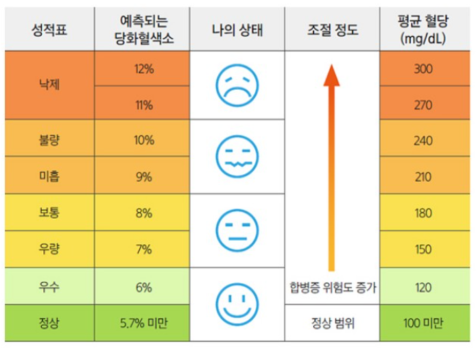 | 정상 | 5.7% 이하 | 혈당이 정상적으로 관리되고 있음 |