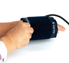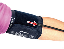 팔뚝에 커프(압박띠)를 감을 때, 심장 높이에 맞춰야 합니다.